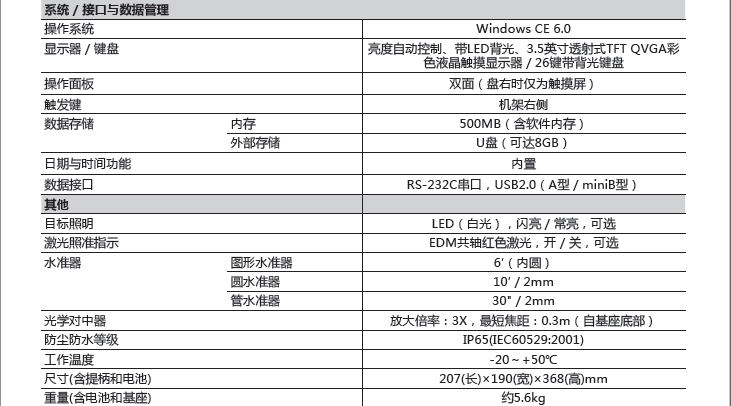 符合《測繪資質(zhì)分級標準規(guī)定(2014版)》中“大地測量”及“工程測量”甲級認證標準對高精度全站儀的要求。